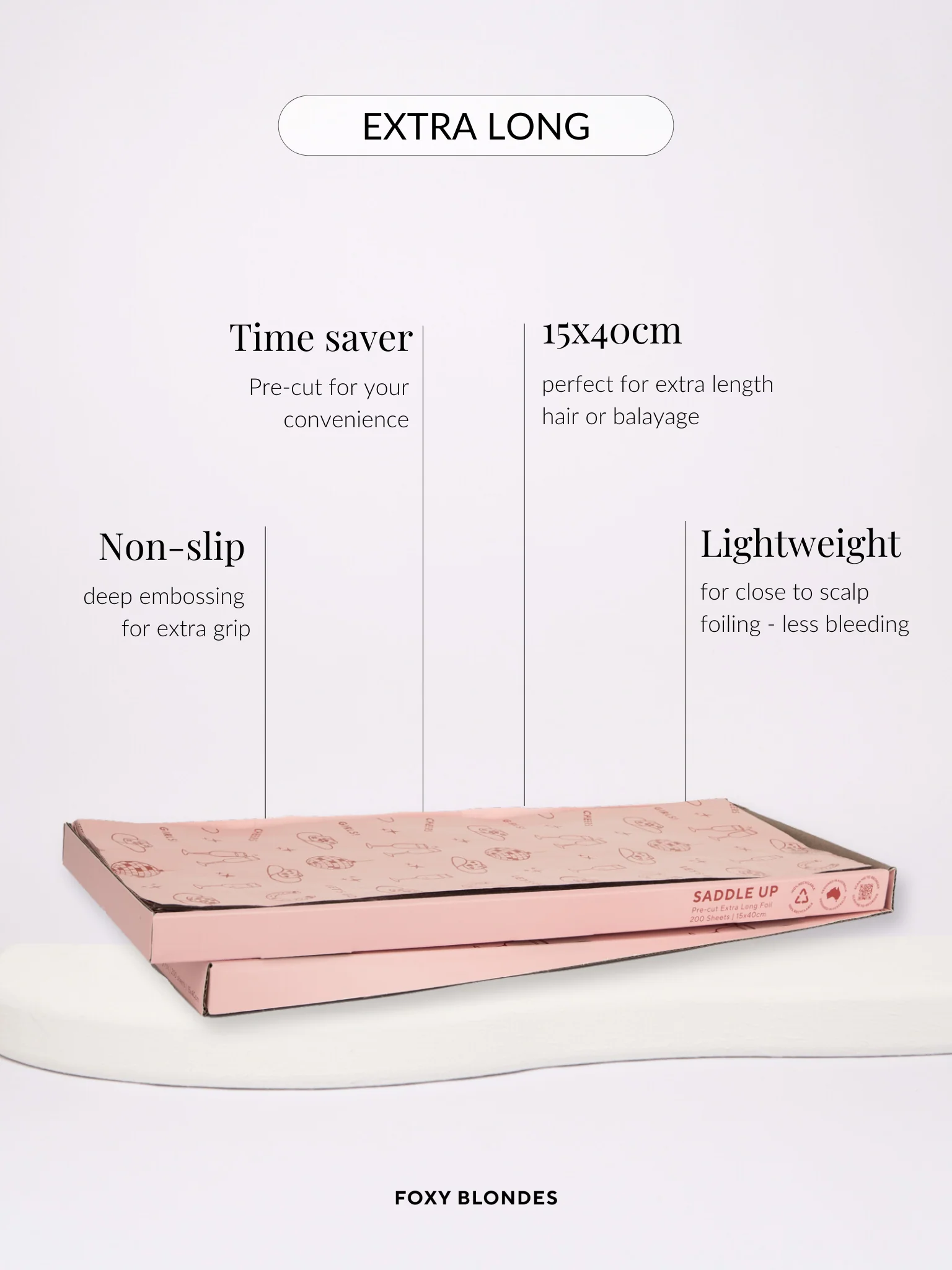 Nothing says “practical flair” like an Extra Long Foil! A balayage’s best friend, Foxy Blondes 15 x 40cm Pre-Cut Hairdressing Foils have never met a head of hair they didn’t like. Make your salon life a breeze with each specially-crafted foil, embossed for extra hold and designed to get tongues wagging.