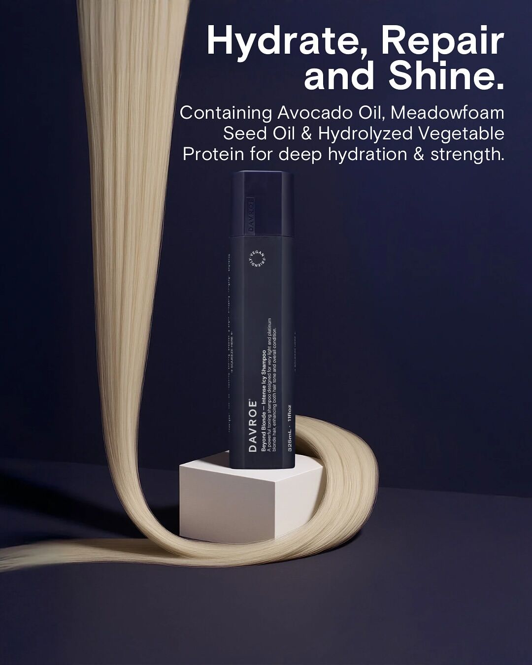 - Rinse thoroughly and follow with Davroe Blonde Smoothing Conditioner for best results.