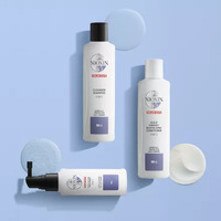 Nioxin Hair Care System 5 Kit for chemically treated hair, such as bleached, straightened or relaxed with progressed thinning amplifies hair structure and protects against hair breakage. This unique set of three professional hair products, based on an advanced skin care approach, is specially formulated as a hair thickening treatment, delivering smoothness and hydrated hair. The Nioxin System 5 regimen reduces hair fall due to breakage, strengthens the hair and delivers a healthy shine to chemically treated hair, while refreshes the scalp. The Nioxin Cleanser Shampoo removes dirt, sebum and other environmental residues from the scalp and hair. Nioxin Scalp Therapy Conditioner is a lightweight conditioner that helps provide hair resilience, hydrates scalp and hair from root to tip. Nioxin Scalp & Hair Treatment refreshes the scalp and increases hair volume of every strands.